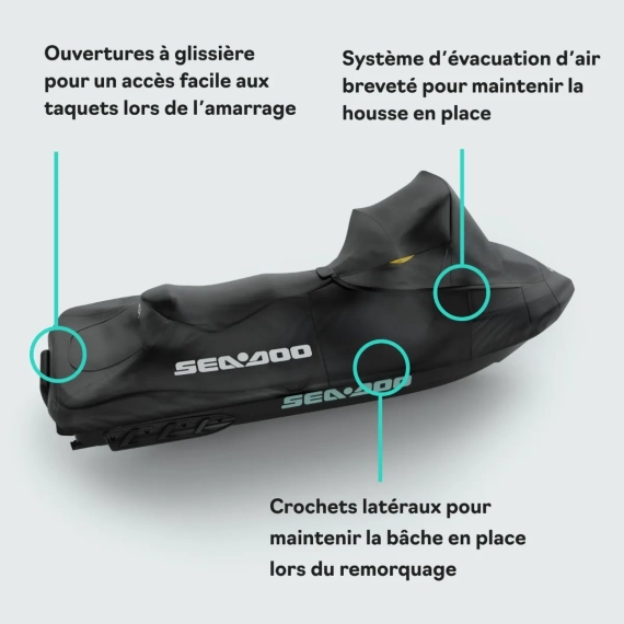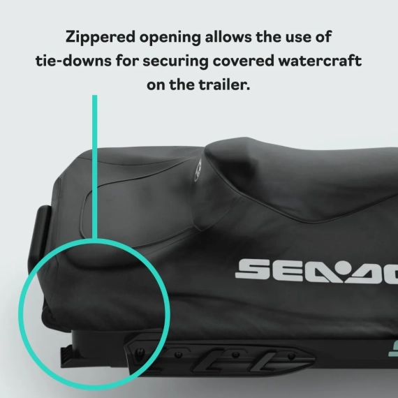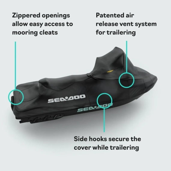 Dette spesialtilpassede vannscootertrekket er utviklet for Sea-Doo RXT, RXT-X, GTX og Wake Pro med Touring Windshield. Trekket er laget i UV-bestandig polyesterduk som tåler sol, vær og vind, og er godt egnet både til lagring og transport på henger.