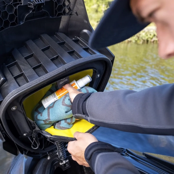 Gjør praktiske løsninger til en del av hver tur med Lid Organizer – en oppbevaringsløsning med glidelås for vannscooter som tar minimalt med plass, samtidig som små personlige eiendeler holdes ryddig og ute av veien. Laget i slitesterk, fleksibel netting som kan utvides og rommer opptil 1,6 US gal (6 liter). Perfekt når du vil ha litt ekstra praktisk oppbevaring på turen ut på vannet.