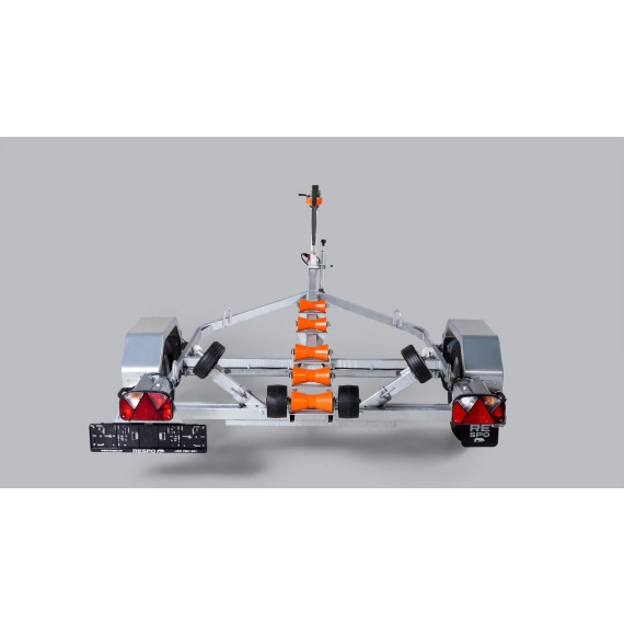 Kjølruller og justerbare sidestøtter hjelper båten til å ligge stødig og trygt på hengeren.