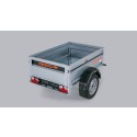 Vår aller minste tilhenger for små flyttinger og jobber. Karmer og lemmer er laget av en hel stålplate og viktige komponenter, som bunn og sidekarmer er festet sammen med HuckLok® bolter, som er vibrasjonssikre.Overflater er i høykvalitetsstål med belegg i Magnelis®, som er 3 ganger mer motstandsdyktig mot korrosjon enn vanlig stål som brukes. Egner seg også godt til å trekke etter en ATV!