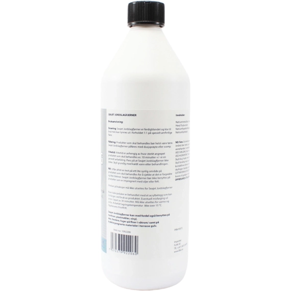 - NB: Utfør alltid en test på ett lite synlig område på produktet som skal behandles for å sjekke at det er fargeekte og ikke blekner. Seajet Jordslagfjerner bør ikke benyttes på produkter som er impregnert med oljer eller fett.