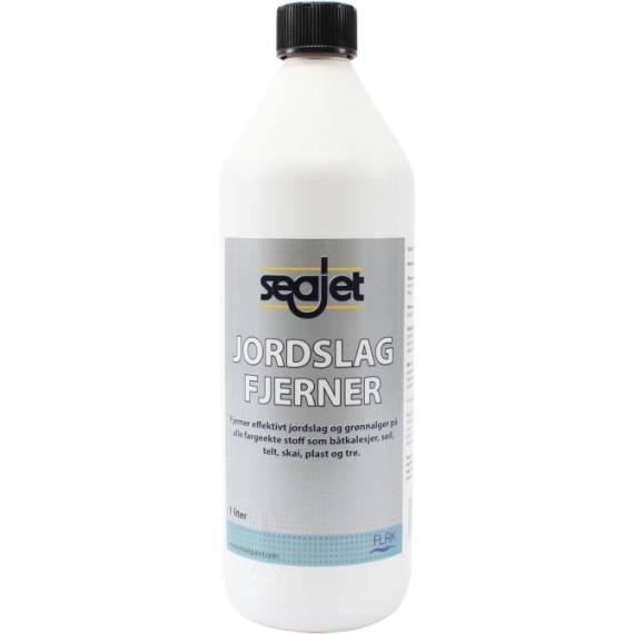 Sejaet Jordslagfjerner fjerner effektivt jordslag og grønnalger på alle fargeekte stoff, som båtkalesjer, seil, telt, skai, plast og tre.