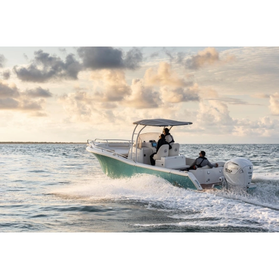 XTO 400 hk V8 tar begrepet «rå kraft» og gjør det til en kunstform. Direkteinnsprøytning skjerper ytelsen, optimaliserer drivstoffbruken og utvider dreiemomentkurven til den nærmest får sitt eget postnummer. Samtidig gjør det integrerte digitale elektriske styresystemet at håndteringen føles silkemyk, presis og imponerende smidig – spesielt når det kombineres med Helm Master EX®. Og takket være thrust-forsterkende revers-teknologi kan du smette inn på trange båtplasser i marinaen med den rolige selvtilliten til noen som definitivt ikke øvde klokken fem om morgenen når ingen så på. Definitivt.